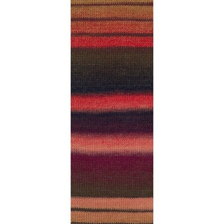 Kies jou favoriete kleurencombinatie en haak of brei met 1 bol Lana Grossa Gomitolo Arte een sjaal. De looplengte is 700m.